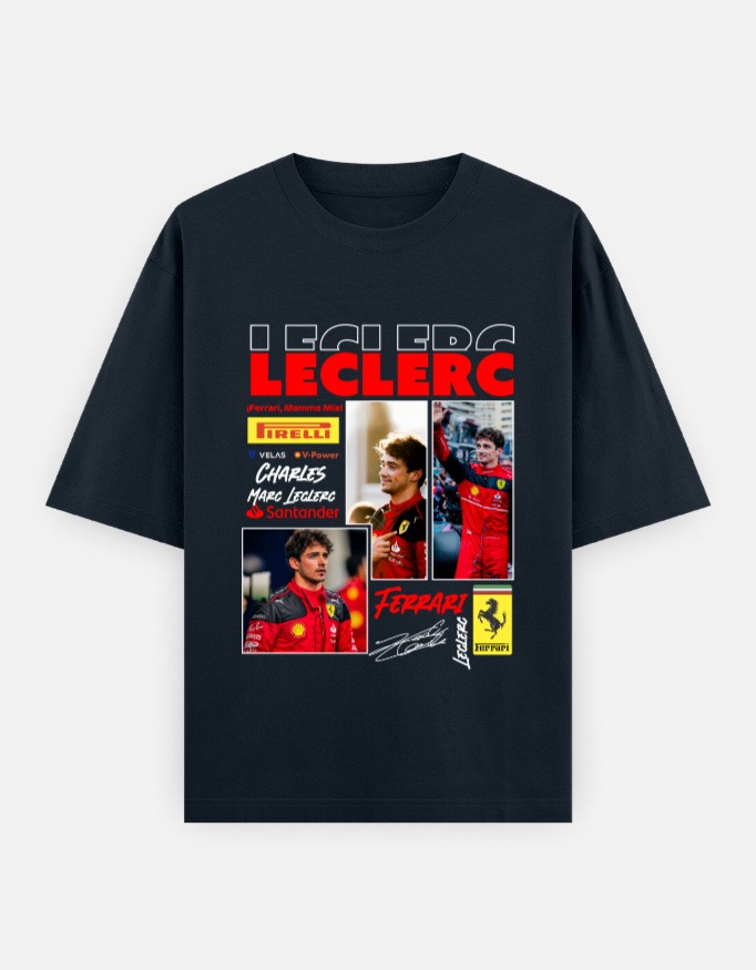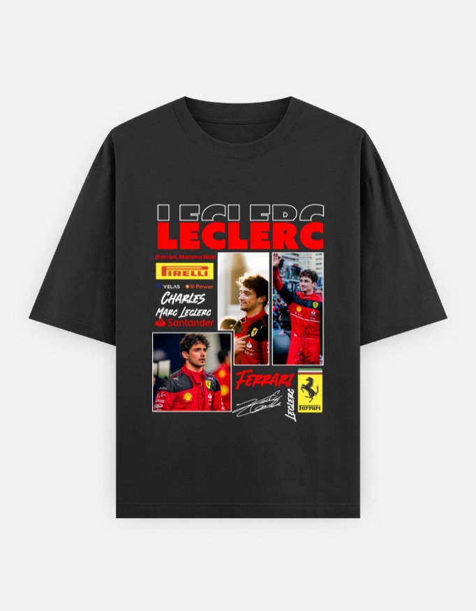 Be the first to review “Charles Leclerc Fan Tee – Vintage Ferrari Tribute (Black Oversized)”