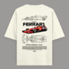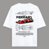 Honor the speed, precision, and heritage of the legendary Scuderia Ferrari with this striking graphic tee. Designed with a clean red-on-black aesthetic, it features detailed car schematics and a vibrant Ferrari F1 machine in full throttle.