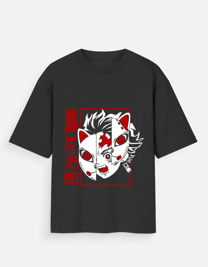 Tanjiro Kamado – Fox Mask Split Face Anime Tee | Unisex Oversized Standard T-Shirt